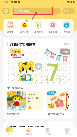 1、打開(kāi)兒童內(nèi)容類應(yīng)用,點(diǎn)擊頂部搜索框,進(jìn)入搜索頁(yè)面。