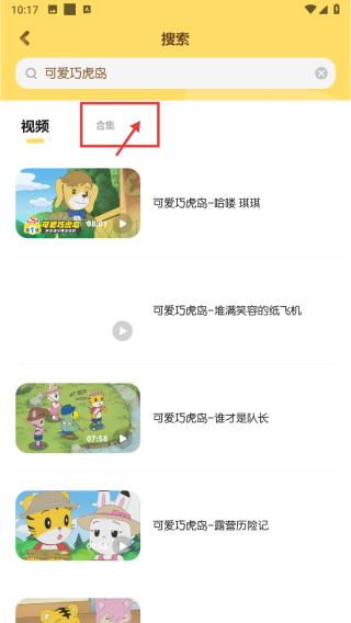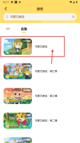 4、在視頻合集列表頁(yè)面,點(diǎn)擊可愛(ài)巧虎島合集條目,查看該系列視頻合集。