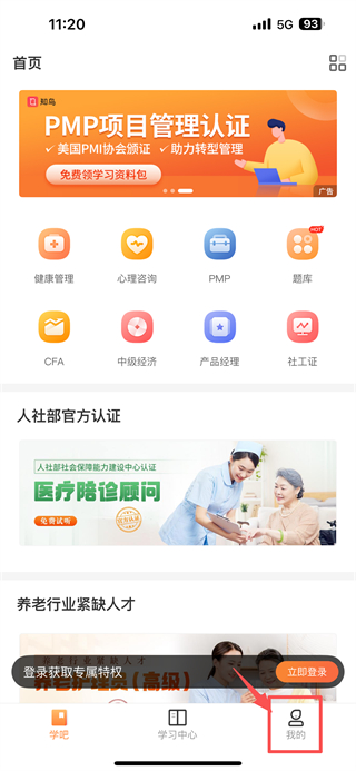 1、打開學習服務類應用,點擊底部我的選項,進入個人中心頁面。