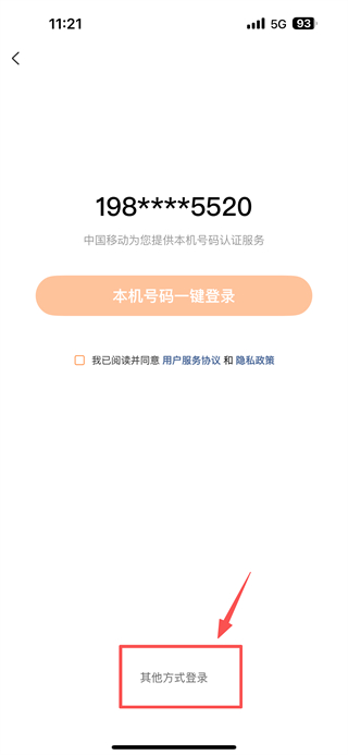 3、在登錄頁面,點擊其他方式登錄選項,進入手機號驗證碼登錄頁面。