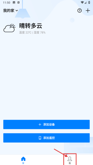 1、打開(kāi)智能家居類應(yīng)用,點(diǎn)擊底部我選項(xiàng),進(jìn)入個(gè)人中心頁(yè)面。