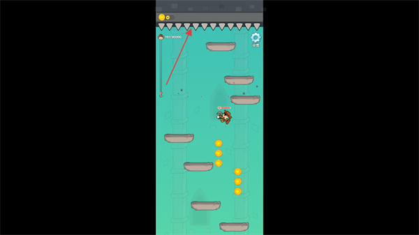 2、進入關(guān)卡后,上方會出現(xiàn)地刺陷阱,需要左右滑動屏幕操控角色下落躲避地刺。