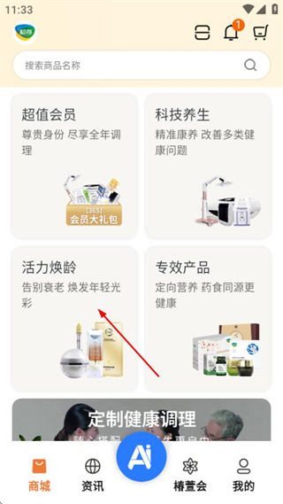 1、打開初存,點(diǎn)擊活力煥齡,可進(jìn)入活力煥齡商品列表頁(yè)面。