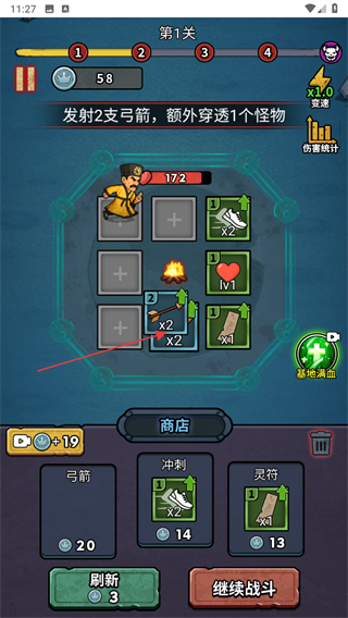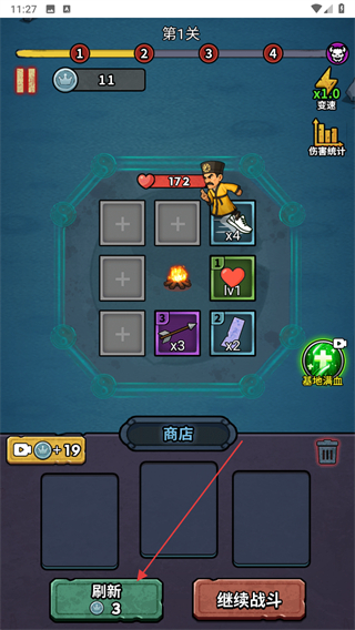 1、通過商店購買相同卡牌進行合成,獲得更高等級的攻擊卡牌。