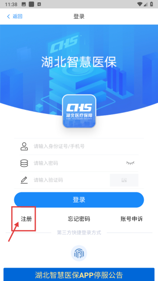3、在登錄頁面,點擊注冊按鈕,進入注冊信息填寫頁面。