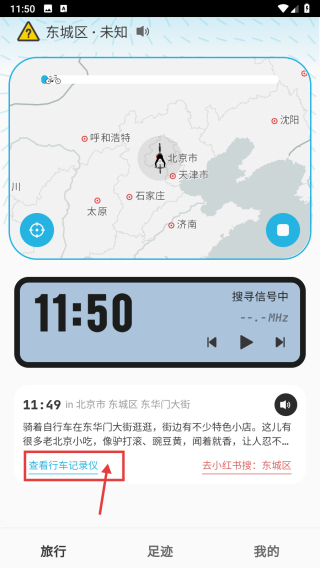 1、打開旅行足跡類APP,點擊查看行車記錄儀選項,進入行車記錄儀頁面。