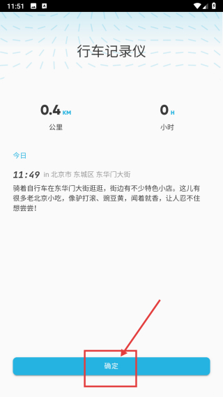 2、在行車記錄儀頁面,點擊確定按鈕,完成行車記錄確認。