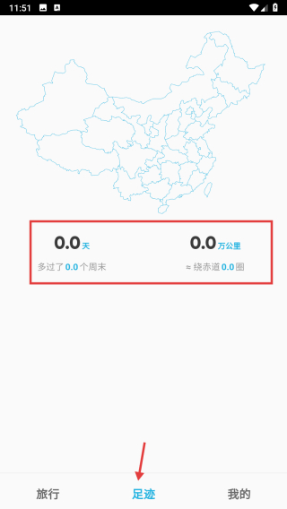 3、點擊底部足跡選項,查看行程數(shù)據(jù)如天數(shù)、公里數(shù)等。