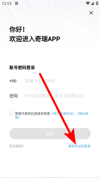 2、在登錄頁面,點擊使用驗證碼登錄,進入驗證碼登錄頁面。