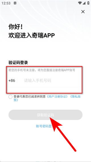 4、輸入驗證碼,勾選用戶協(xié)議后,完成賬號登錄。