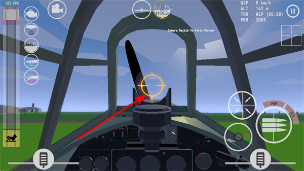 1、在飛機駕駛的第一人稱視角界面,關注瞄準區(qū)域,可輔助進行目標鎖定或飛行方向校準,提升駕駛的精準度。