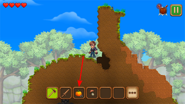 4、在探索過(guò)程中,收集到的南瓜、蘑菇等物品會(huì)存放在道具欄中,這些物品可用于制作、交易等,合理利用收集到的資源。