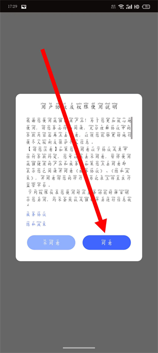 1、打開(kāi)施強(qiáng)健康,在用戶(hù)協(xié)議彈窗中點(diǎn)擊同意。
