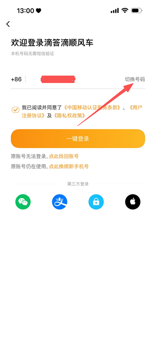 5、最后在登錄頁(yè)面,點(diǎn)擊切換號(hào)碼,可切換手機(jī)號(hào)進(jìn)行登錄操作。