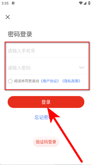 4、輸入手機號碼和密碼,勾選閱讀并同意后,點擊登錄,完成賬號登錄。