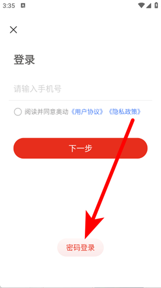 3、在登錄頁面,點擊密碼登錄,進入密碼登錄頁面。
