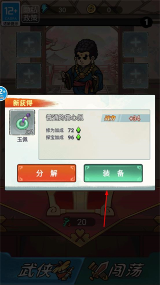 1、獲得裝備后,點(diǎn)擊裝備提升戰(zhàn)力,開(kāi)啟武俠冒險(xiǎn)之旅。