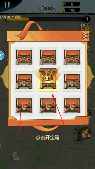 3、點(diǎn)擊開(kāi)寶箱,獲取資源,積累財(cái)富,助力游戲發(fā)展,提升冒險(xiǎn)收益。