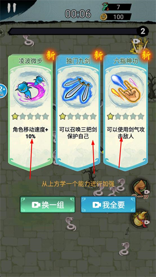 4、選擇技能進(jìn)行加強(qiáng),提升戰(zhàn)斗能力,合理規(guī)劃技能選擇,拓展武俠玩法。