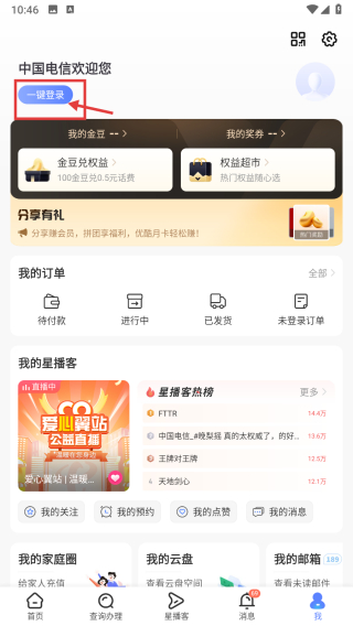 2、在個(gè)人中心,點(diǎn)擊一鍵登錄選項(xiàng),進(jìn)入登錄方式選擇頁面。
