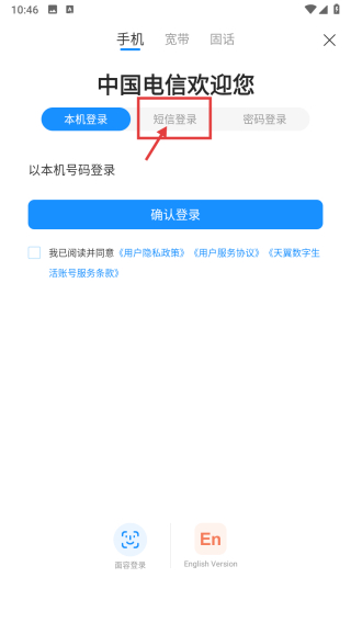 3、在登錄方式選擇頁面,點(diǎn)擊短信登錄選項(xiàng),進(jìn)入短信登錄信息填寫頁面。