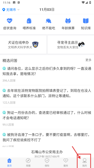 1、打開犬衛(wèi)士APP首頁,點擊底部我的選項,進入個人中心頁面。