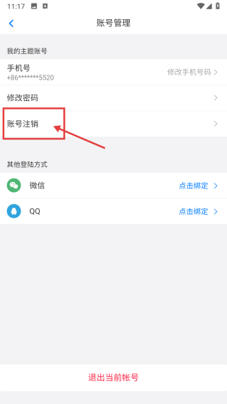 3、在賬號管理頁面,點擊賬號注銷選項,進入注銷須知頁面。