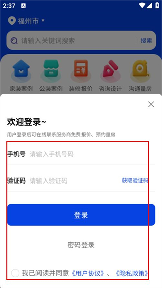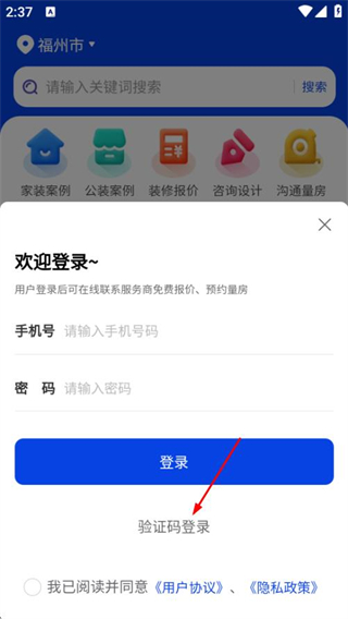 3、在驗(yàn)證碼登錄頁(yè)面,輸入信息,同意協(xié)議后點(diǎn)擊登錄,完成賬號(hào)登錄。