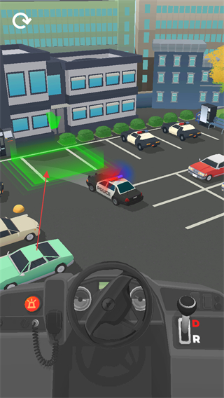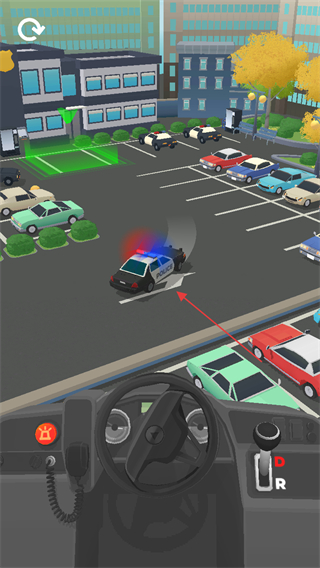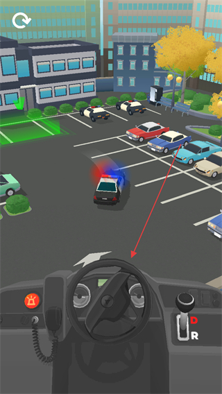 1、操控警車(chē)在停車(chē)場(chǎng)內(nèi)行駛,躲避其他車(chē)輛,向目標(biāo)區(qū)域移動(dòng)。