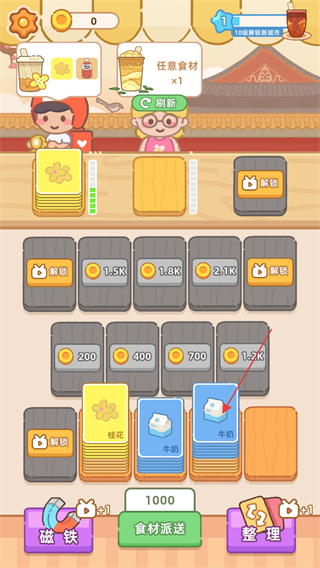 4、當(dāng)準(zhǔn)備區(qū)沒(méi)有卡牌或卡牌各不相同沒(méi)有需要的卡牌時(shí),可以點(diǎn)擊食物派送獲得新的卡牌。