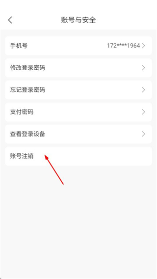 4、在賬號與安全頁面,點(diǎn)擊賬號注銷選項(xiàng),進(jìn)入賬號注銷頁面。