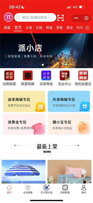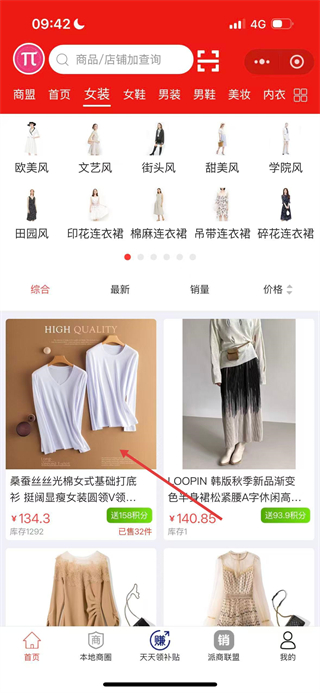 1、在派小店首頁,點擊女裝分類,進入女裝商品頁面。