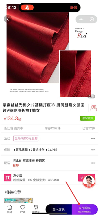 2、在女裝商品頁面,選擇桑蠶絲絲光棉女式基礎(chǔ)打底衫商品,進入其詳情頁。