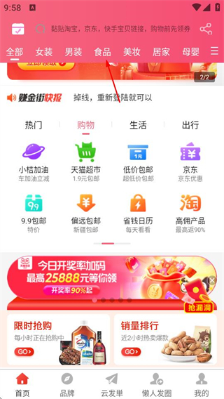 1、在賺金街首頁,點擊食品分類,進入食品商品頁面。