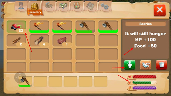 2、食用漿果恢復(fù)HP和食物,維持生存狀態(tài),為持續(xù)探索奠定基礎(chǔ)。