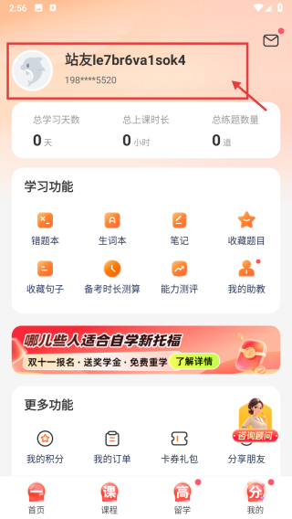 1、打開教育類APP首頁,點擊底部我的選項,進入個人中心頁面。