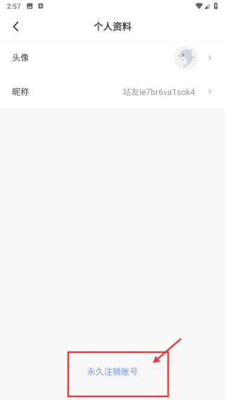 3、在個人資料頁面,點擊永久注銷賬號選項,進入注銷賬號頁面。
