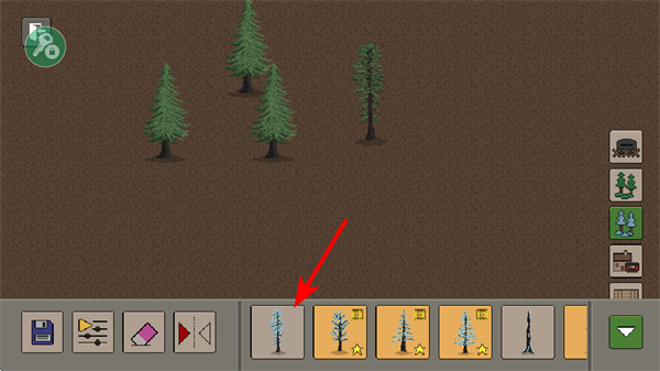 2、選擇樹木類型進(jìn)行地圖布置,地圖布置是構(gòu)建游戲場(chǎng)景的基礎(chǔ)步驟,可營(yíng)造戰(zhàn)斗環(huán)境,提供場(chǎng)景支撐。
