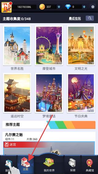 1、打開游戲后,在下方菜單列表可以查看主題手機(jī)進(jìn)度與推薦主題可進(jìn)行選擇。