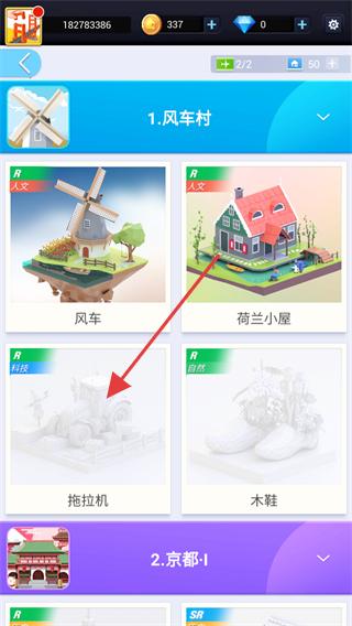 3、關(guān)卡內(nèi)存在不同的村落建筑,選擇灰色未解鎖的建筑進(jìn)行組裝。