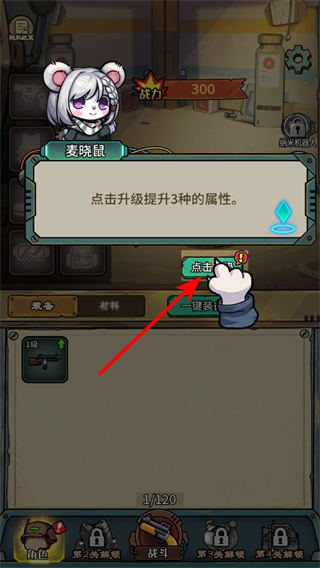2、點擊點擊升級按鈕提升角色屬性,屬性升級是強化戰(zhàn)力的核心步驟,升級防御、血量關(guān)鍵屬性,增強能力。