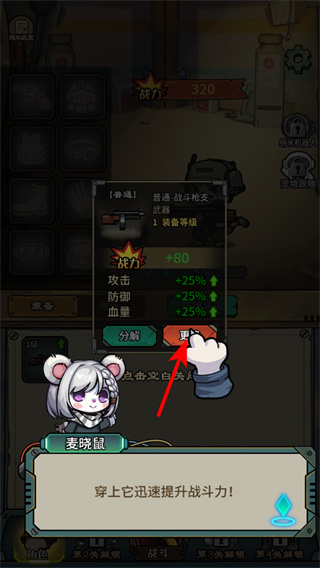 4、點擊更換按鈕裝備新武器,武器更換是提升戰(zhàn)力的關(guān)鍵操作,穿上強力武器可迅速提升戰(zhàn)斗力,助力戰(zhàn)斗。