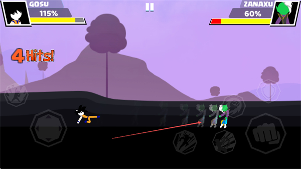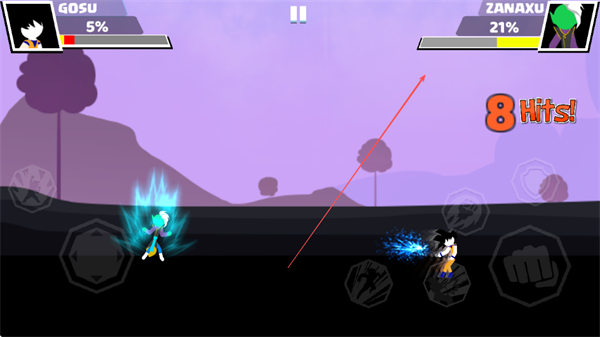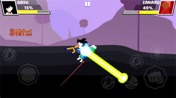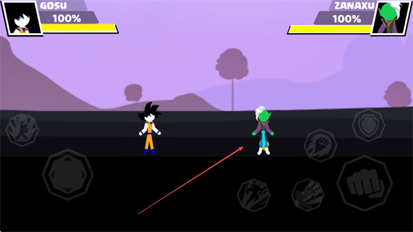 1、操控火柴人悟空,在格斗場景中靠近敵方角色ZANAXU,準(zhǔn)備發(fā)起攻擊。