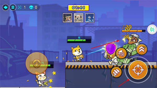 1、進(jìn)入游戲后,通過左側(cè)搖桿控制角色移動(dòng),右側(cè)按鈕操控跳躍、射擊,開啟戰(zhàn)斗之旅。