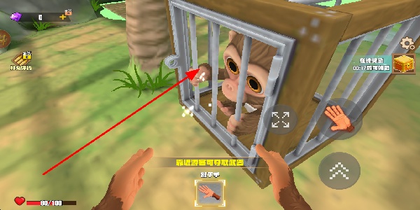 4、找到被關(guān)押的小猴子,解開(kāi)牢籠,將其救出,完成救援任務(wù),解鎖新的劇情和游戲區(qū)域。