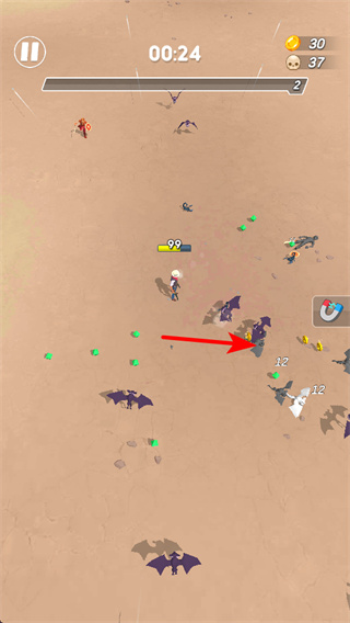 3、瞄準(zhǔn)敵人密集區(qū)域發(fā)起攻擊,精準(zhǔn)攻擊是提升清敵效率的關(guān)鍵環(huán)節(jié),攻擊敵人密集處可一次性消滅多個(gè)敵人,獲取更多金幣。