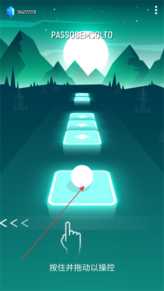 2、在游戲中可以通過按住屏幕進行左右拖動來控制小球的移動和跳躍落點。