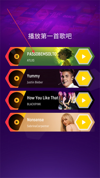 1、打開游戲在游戲主頁可以選擇歌曲進(jìn)行關(guān)卡挑戰(zhàn),通過尋找喜愛的歌曲風(fēng)格可以找到喜歡的歌。
