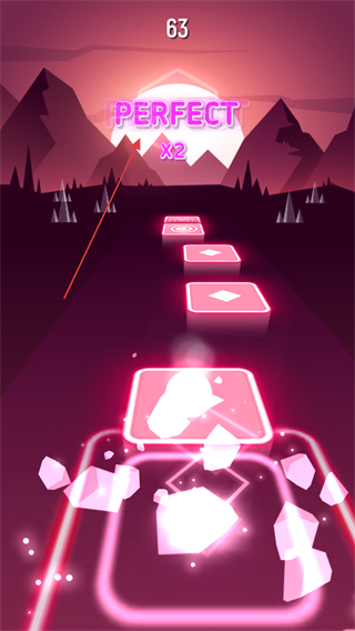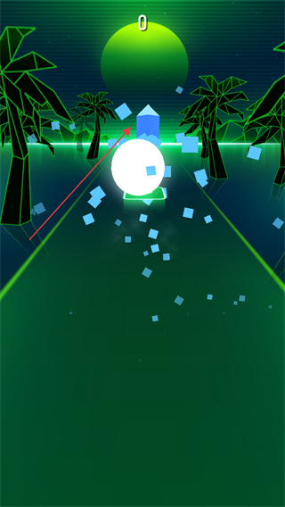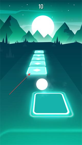 2、在游戲內(nèi)通過跟隨音樂節(jié)奏,控制小球落點在方塊中心白點。