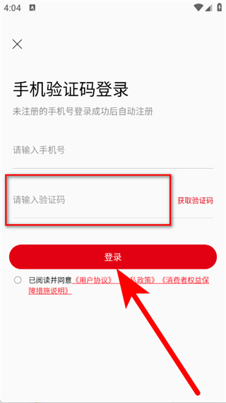 3、在登錄頁面,輸入手機號,點擊獲取驗證碼。